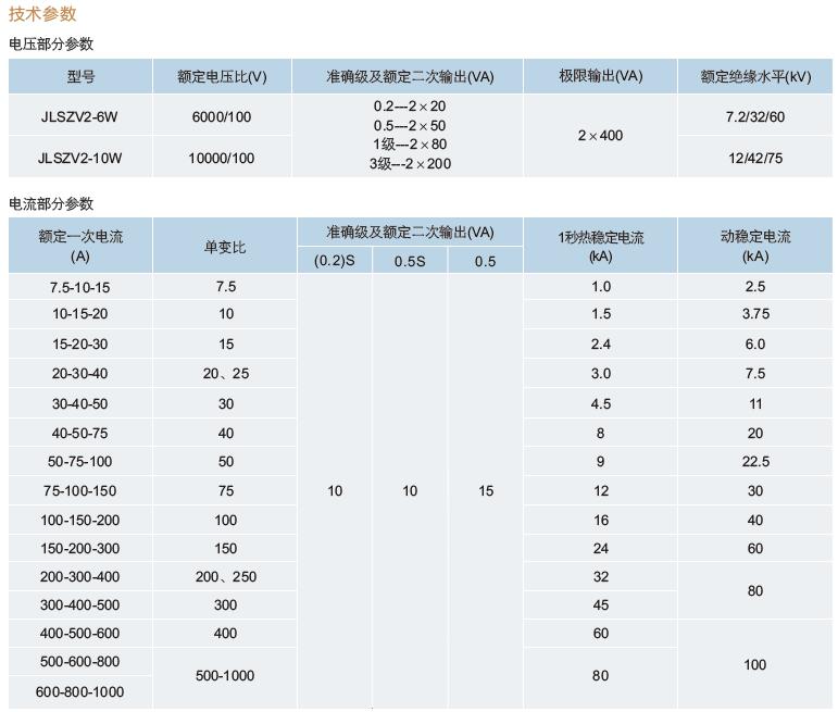 四、JLSZV2-6W、JLSZV2-10W戶外干式組合互感器技術參數