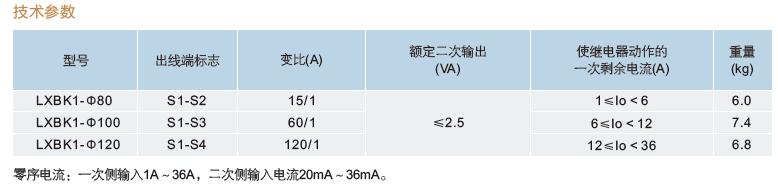 二、LXBK1-Φ80、LXBK1-Φ100、LXBK1-Φ120零序電流互感器變比參數(shù)