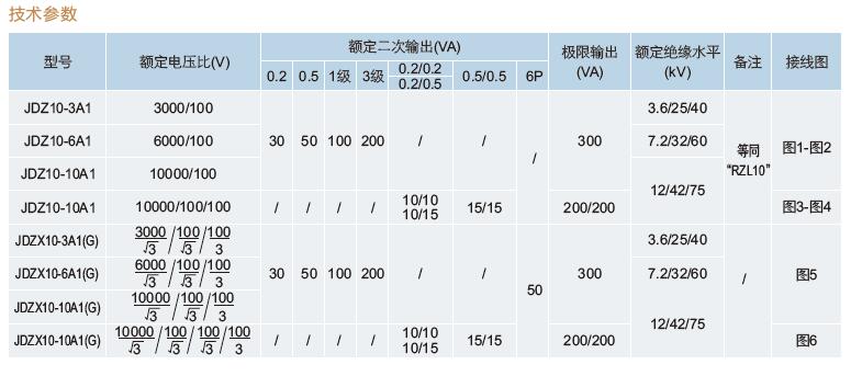 6.額定絕緣水平:JDZ10-6型7.2/32/60kV 、JDZ10-10型12/42/75kV