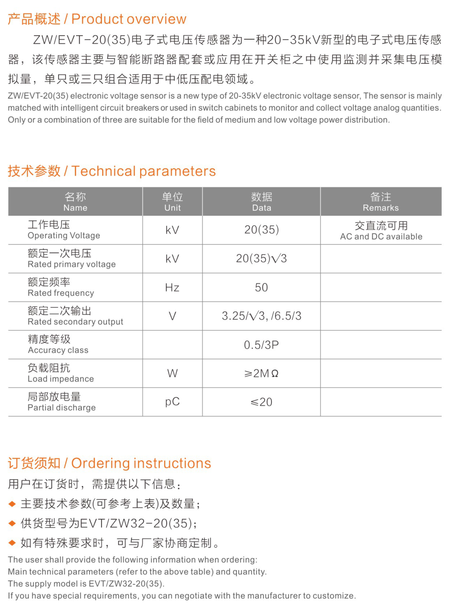 名稱:電子式電壓傳感器